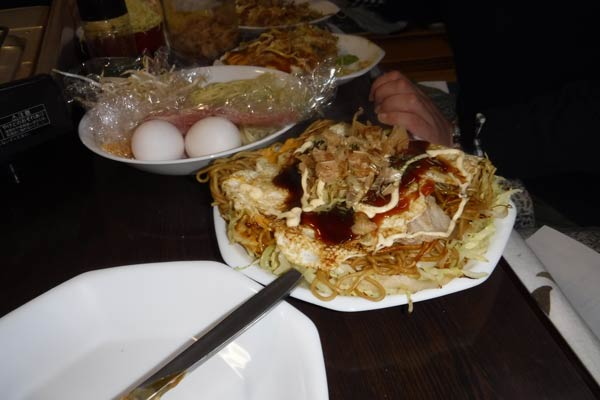 宿泊したゲストハウスでは、スタッフから広島焼きのレクチャーを受け、