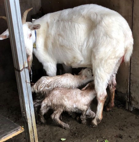 子ヤギが3月22日に2頭生まれました。しかし翌日2頭とも狐に襲われて食い散らかされました。