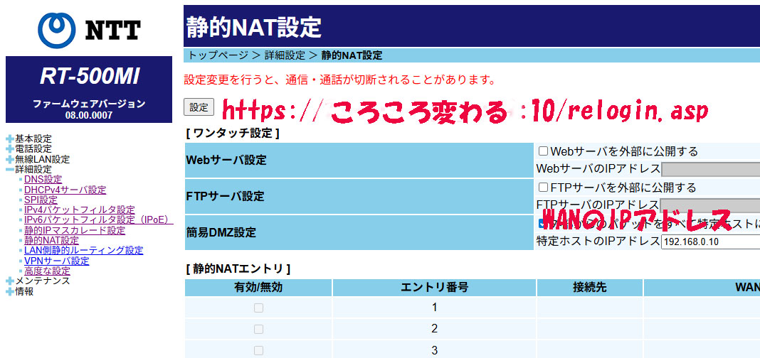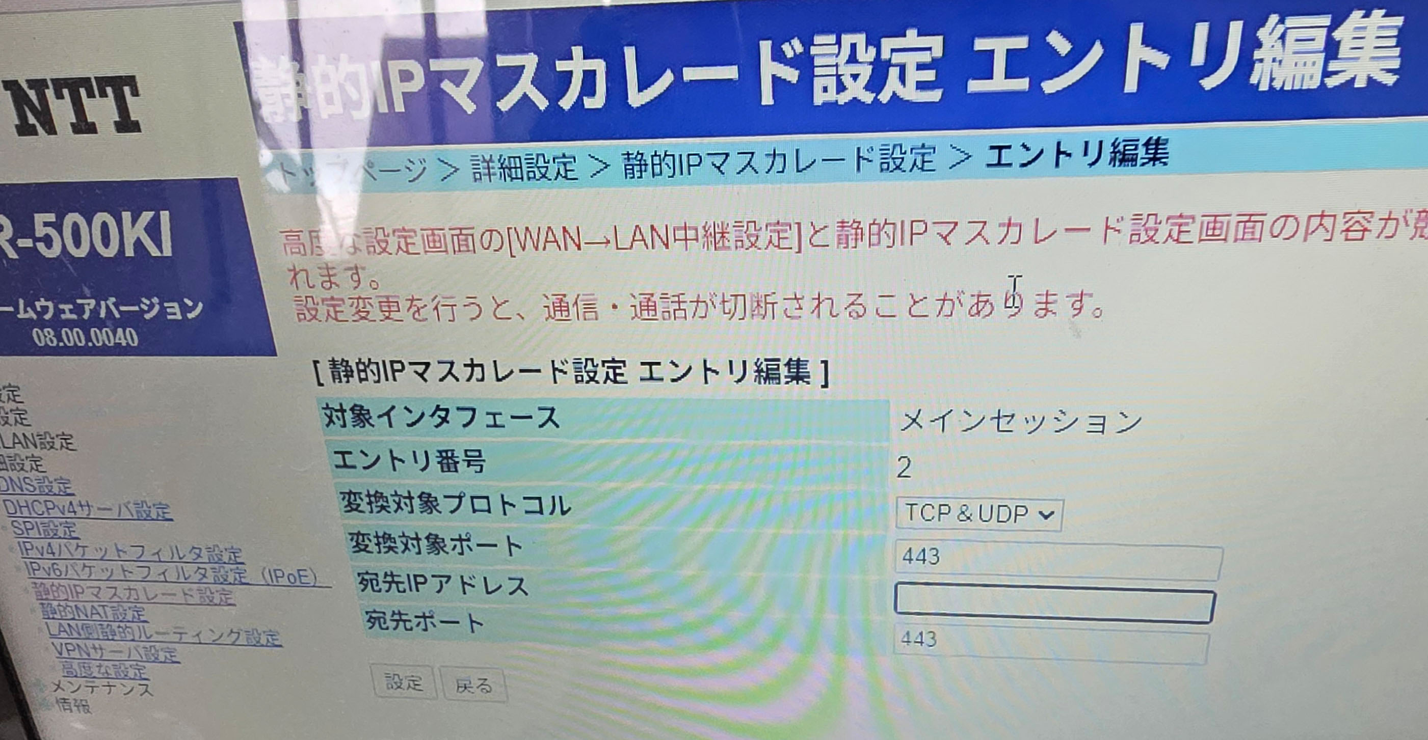 24日詳細設定、静的IPマスカレード設定、エントリー2番編集